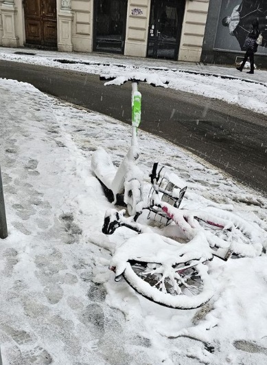 Ilustrační obrázek ukazuje budoucnost osobní dopravy v Praze," přikláda Vávra ke svému komentáři na facebooku obrázek zasněženého kola Vávra.