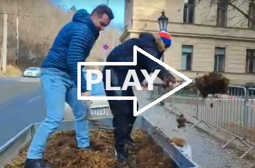 Před Úřadem vlády se uskutečnila protestní akce na podporu českých a německých zemědělců. Na místě se objevil i kravský trus. Podle aktérů je to prý symbolické, protože právě "hovínka a sračínky“ jsou výsledkem práce současné vlády.